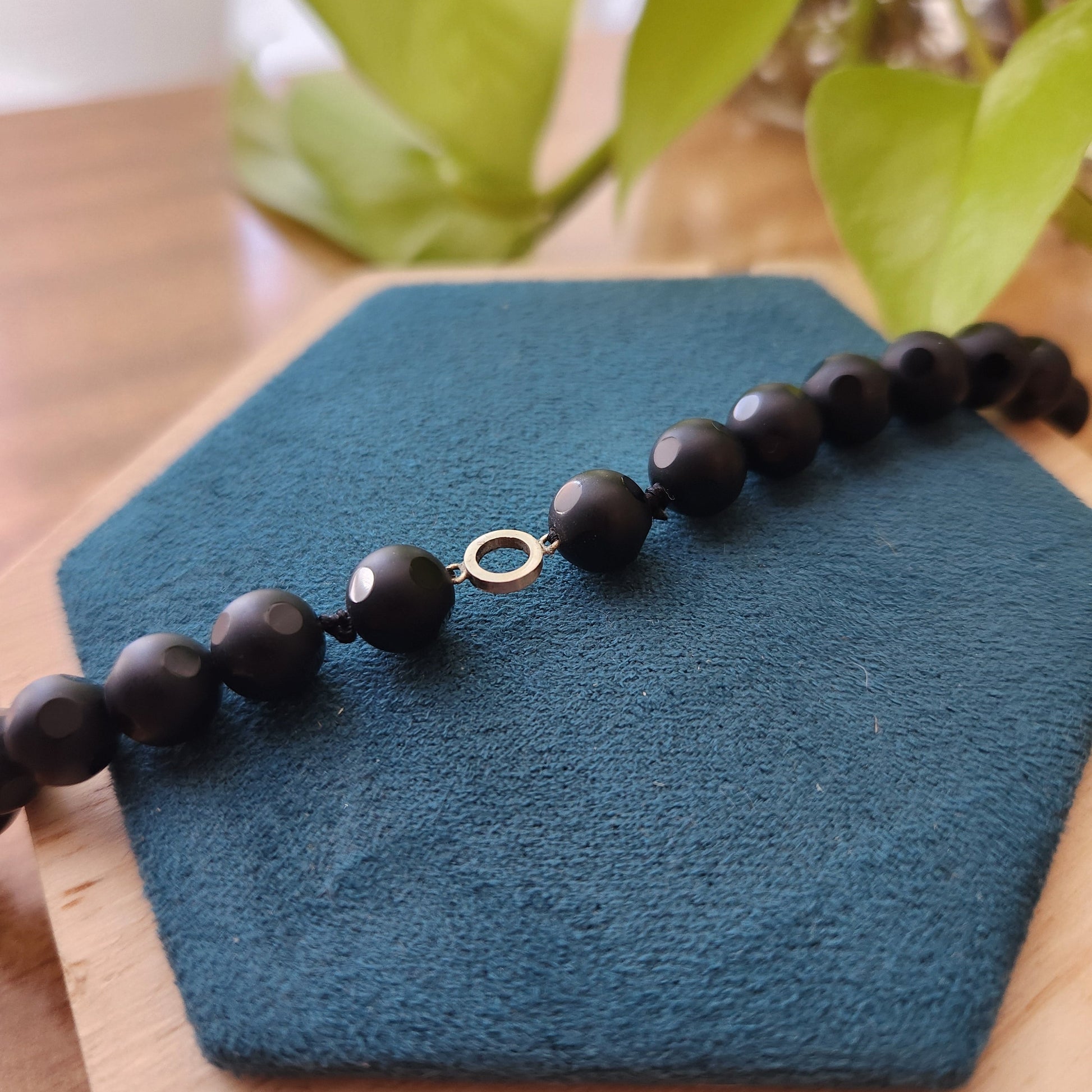 Sterling silver Round on spotted matte/polished Onyx beads.