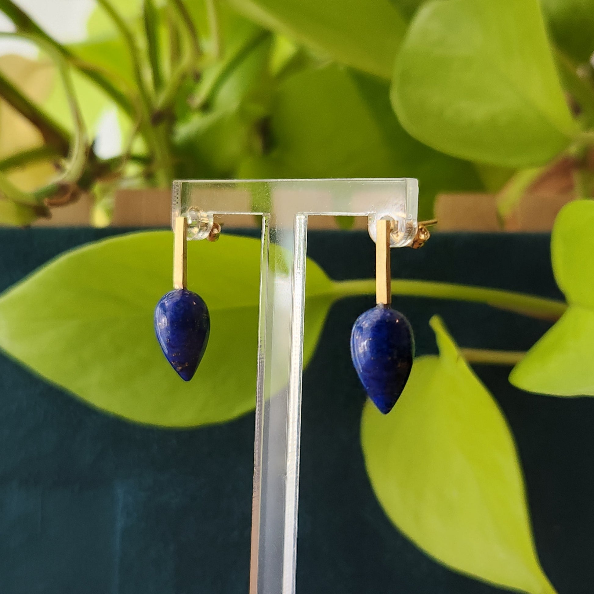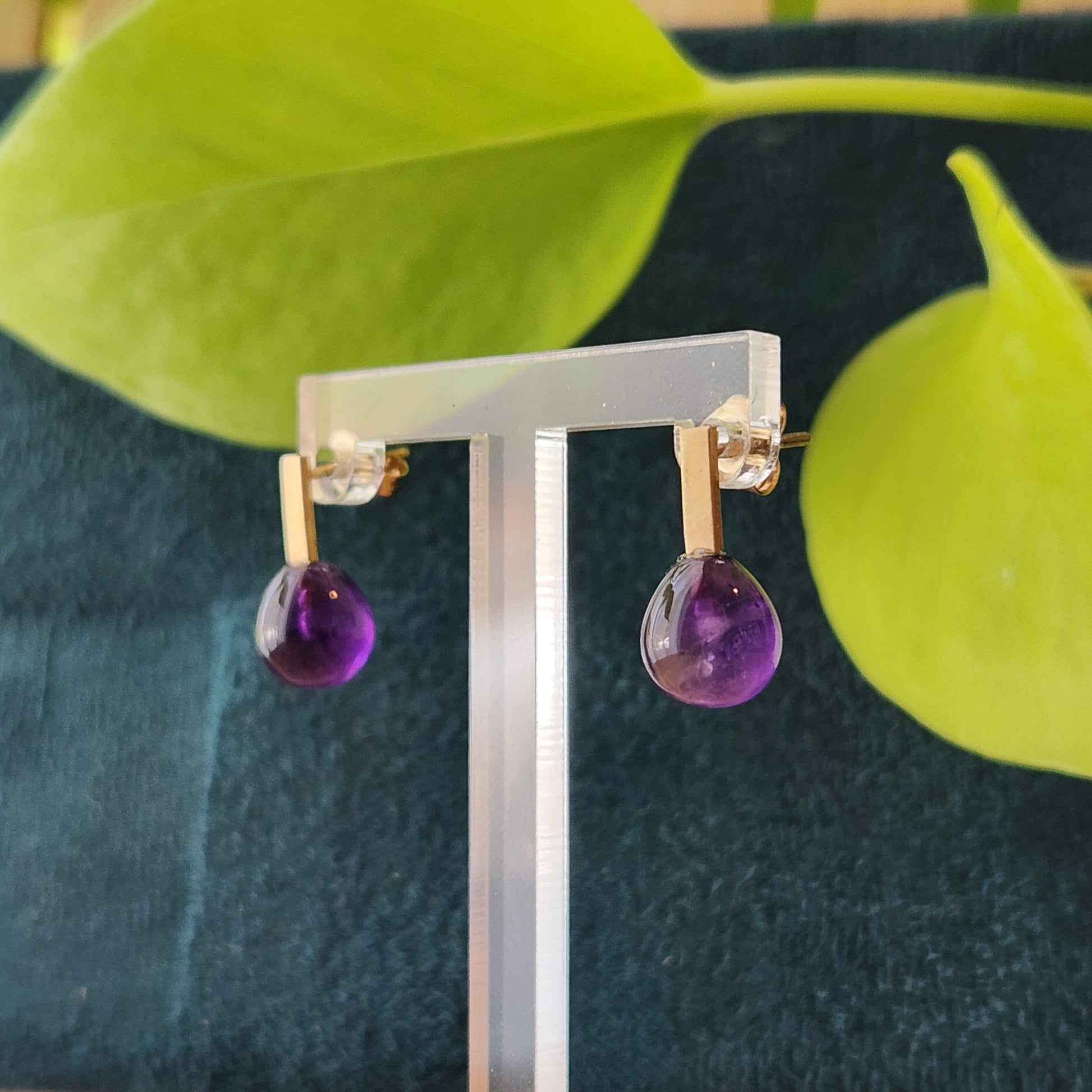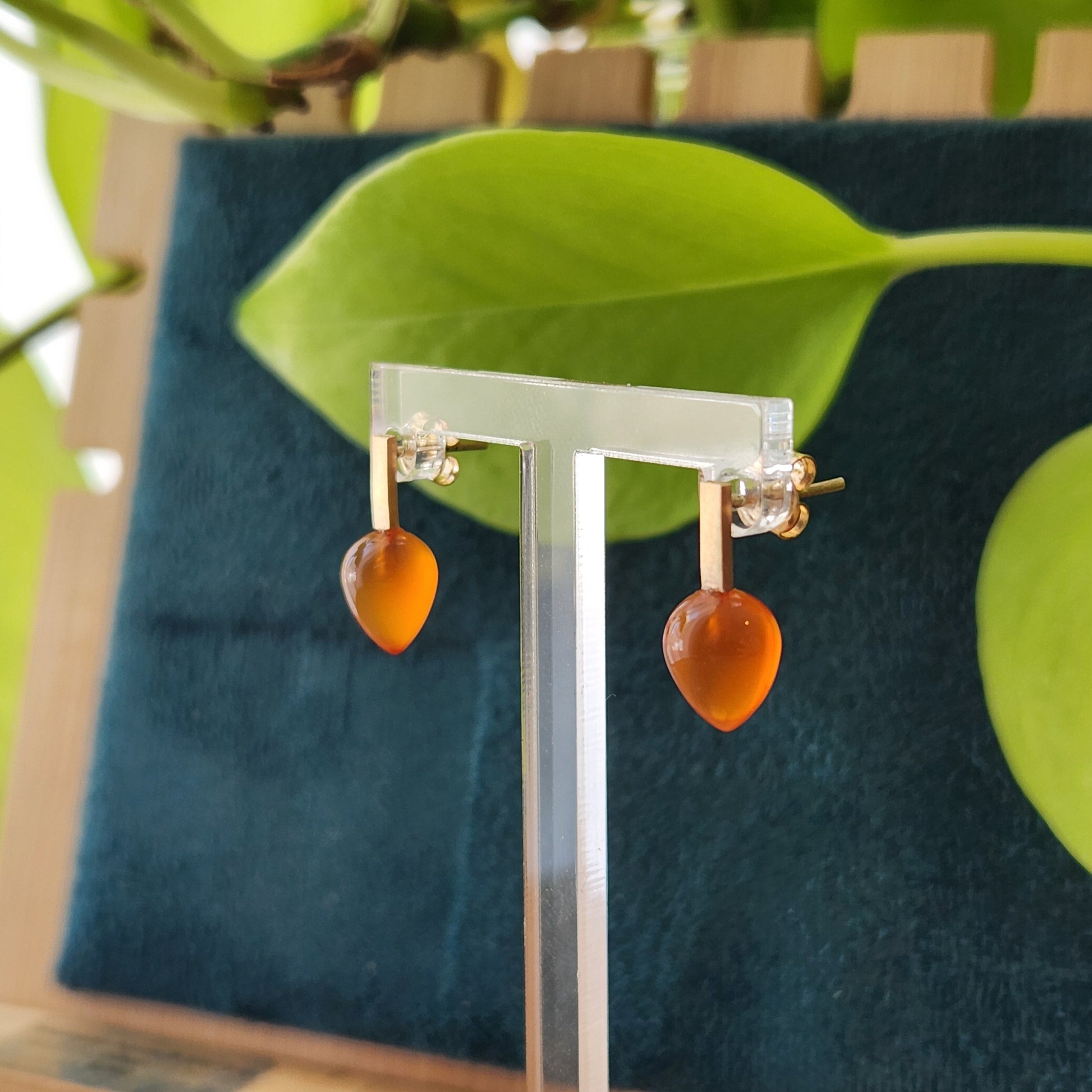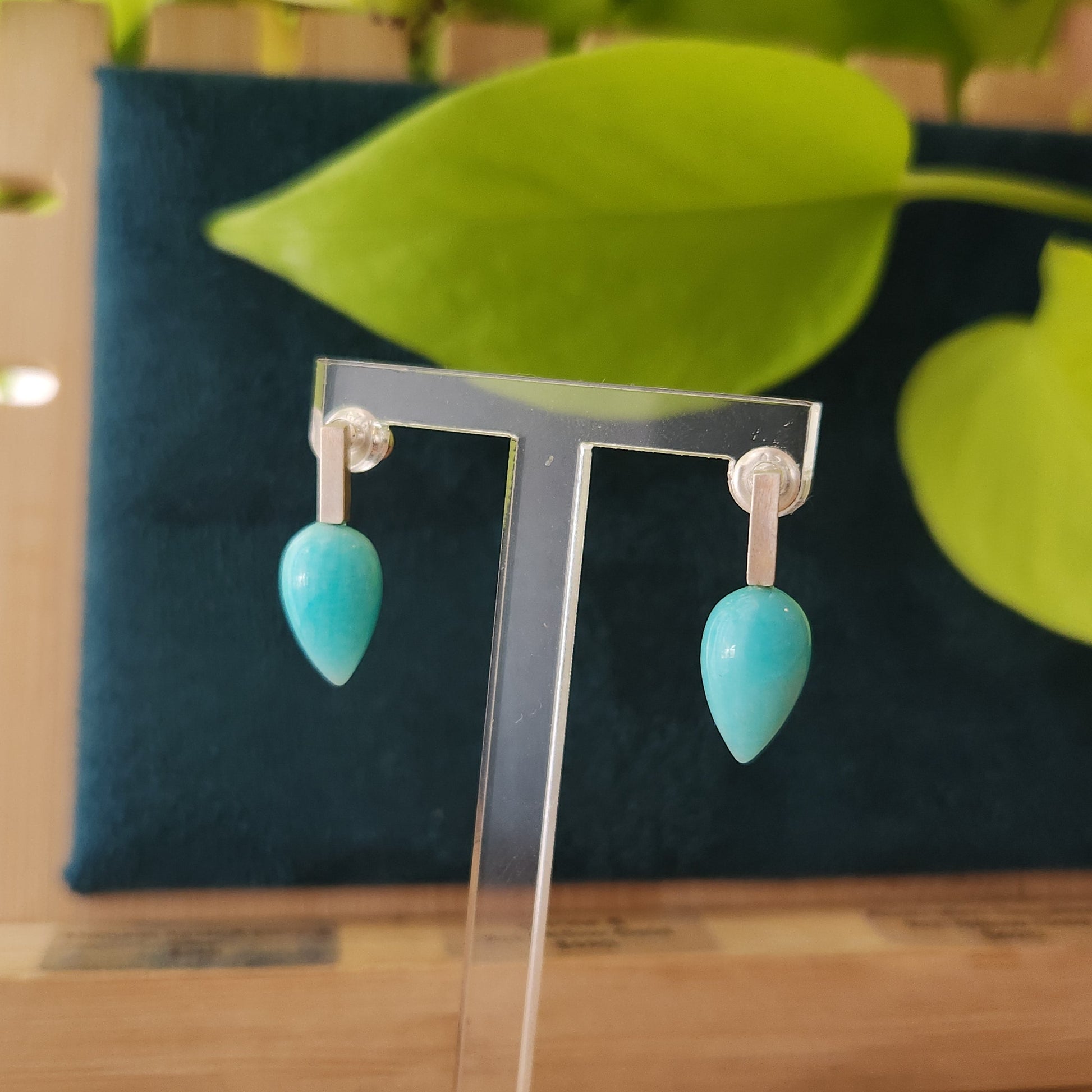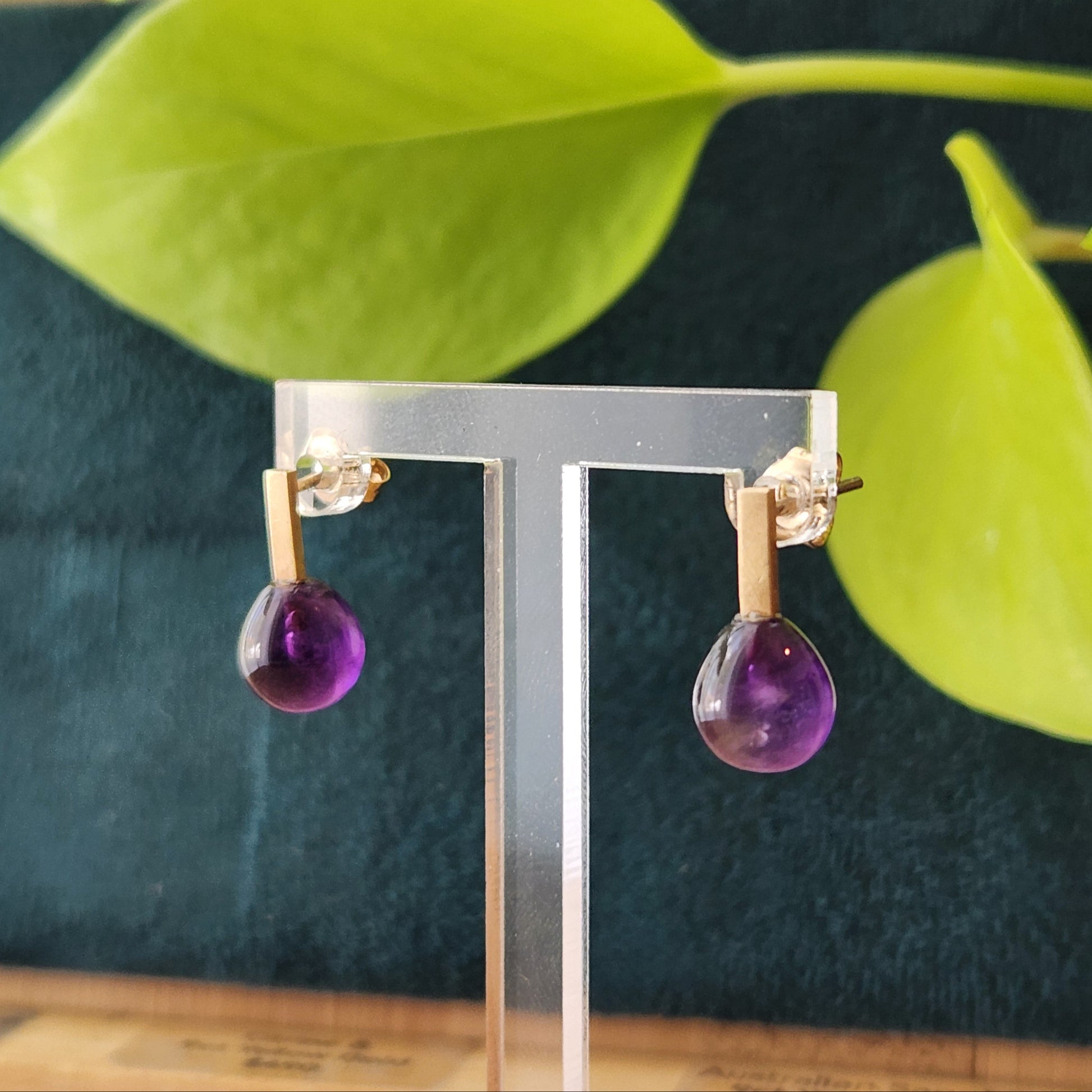 The Granville Studs take their name from the vistas of British Columbia, and their style from the mid century aesthetic that informs much of Mill Foundry's work. Featuring gemstones suspended from a satin finished, wire bar with a stud post and butterfly. These studs are simple, elegant and just the pop of colour required to brighten up any outfit.
