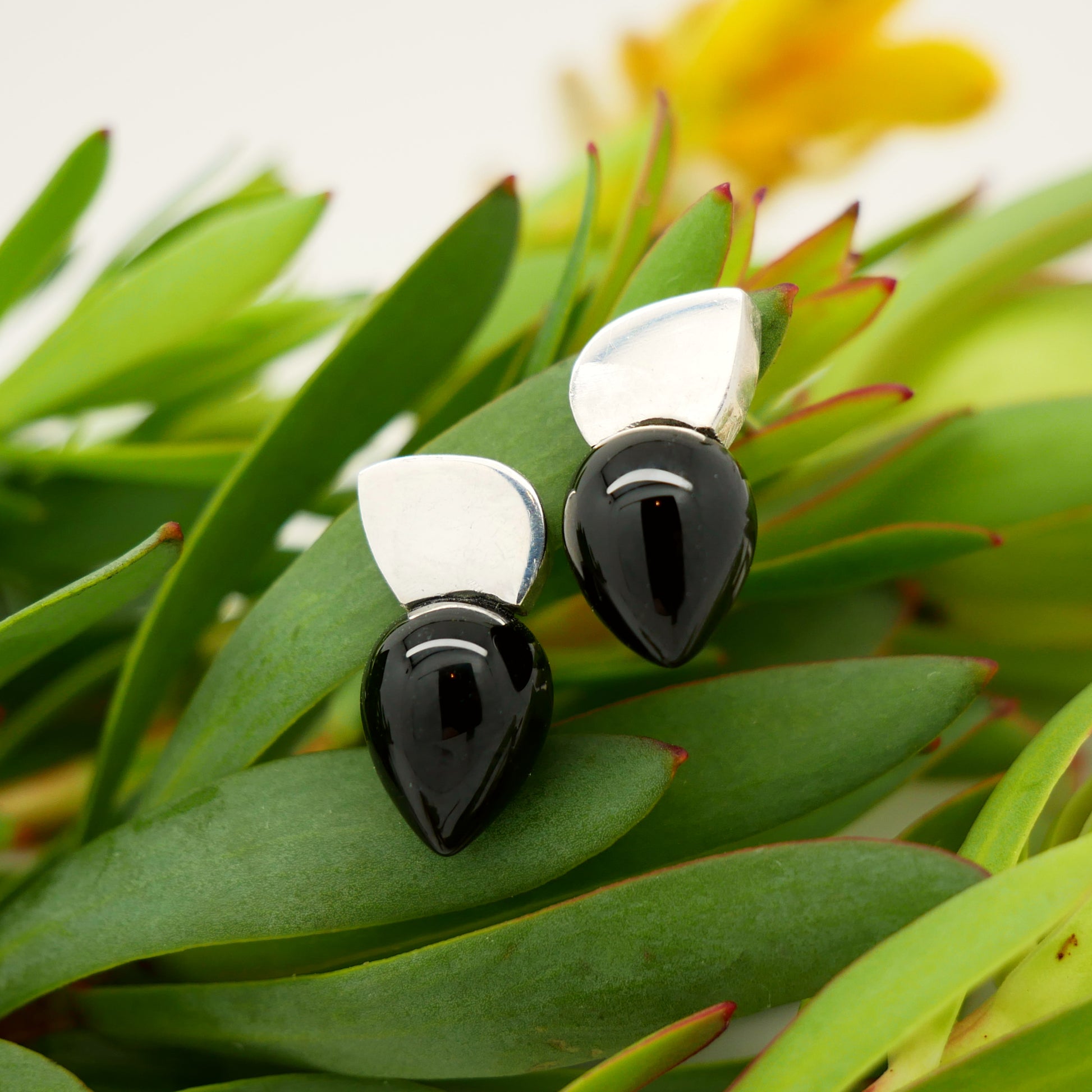 The Imprint CUSP earrings are available as either a stud or drop, and feature high polished inverted briolette gemstones.