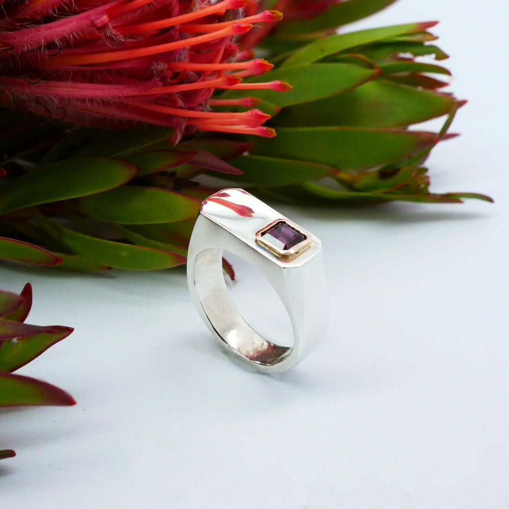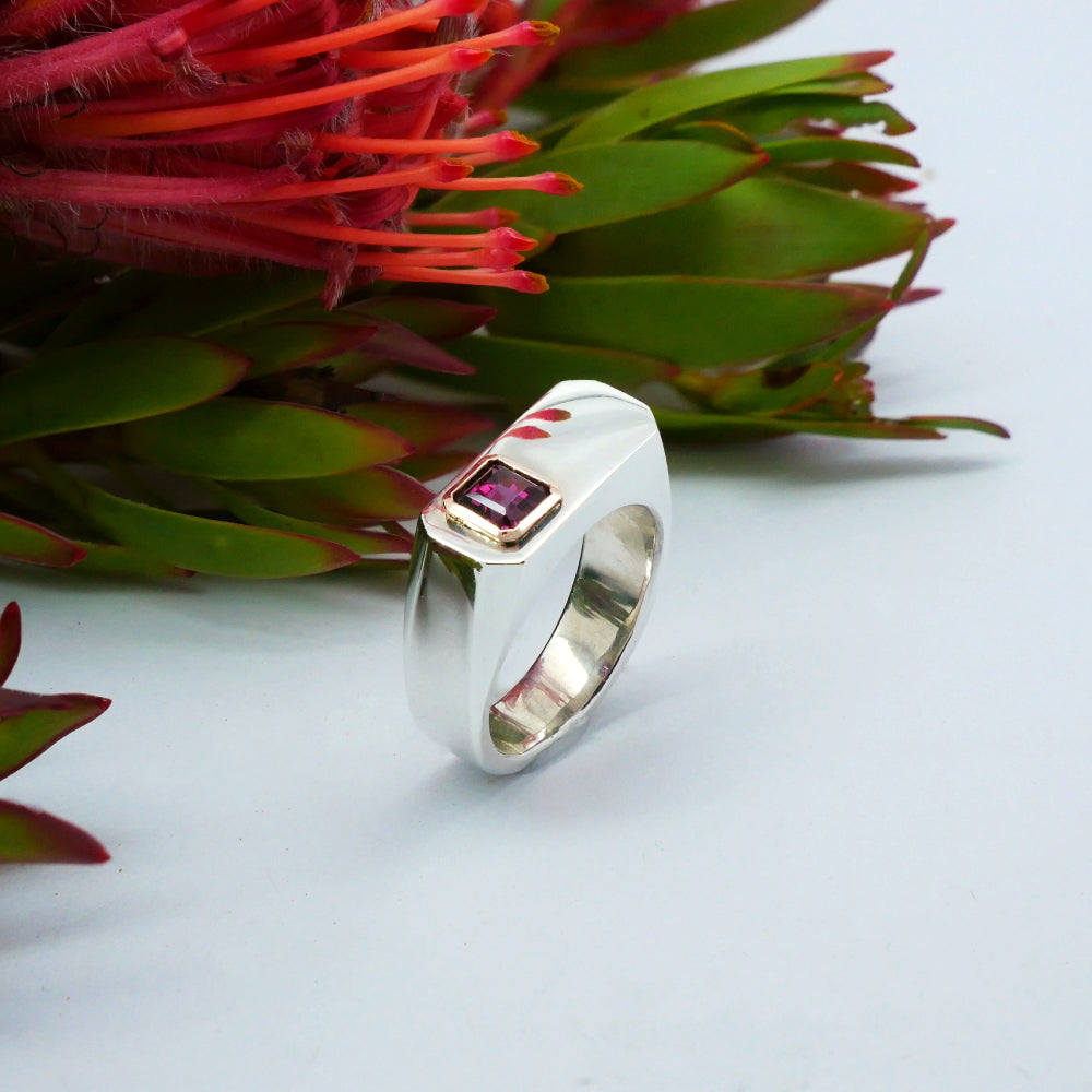 Sterling Silver, 9ct Rose Gold & Raspberry Spinel Ring